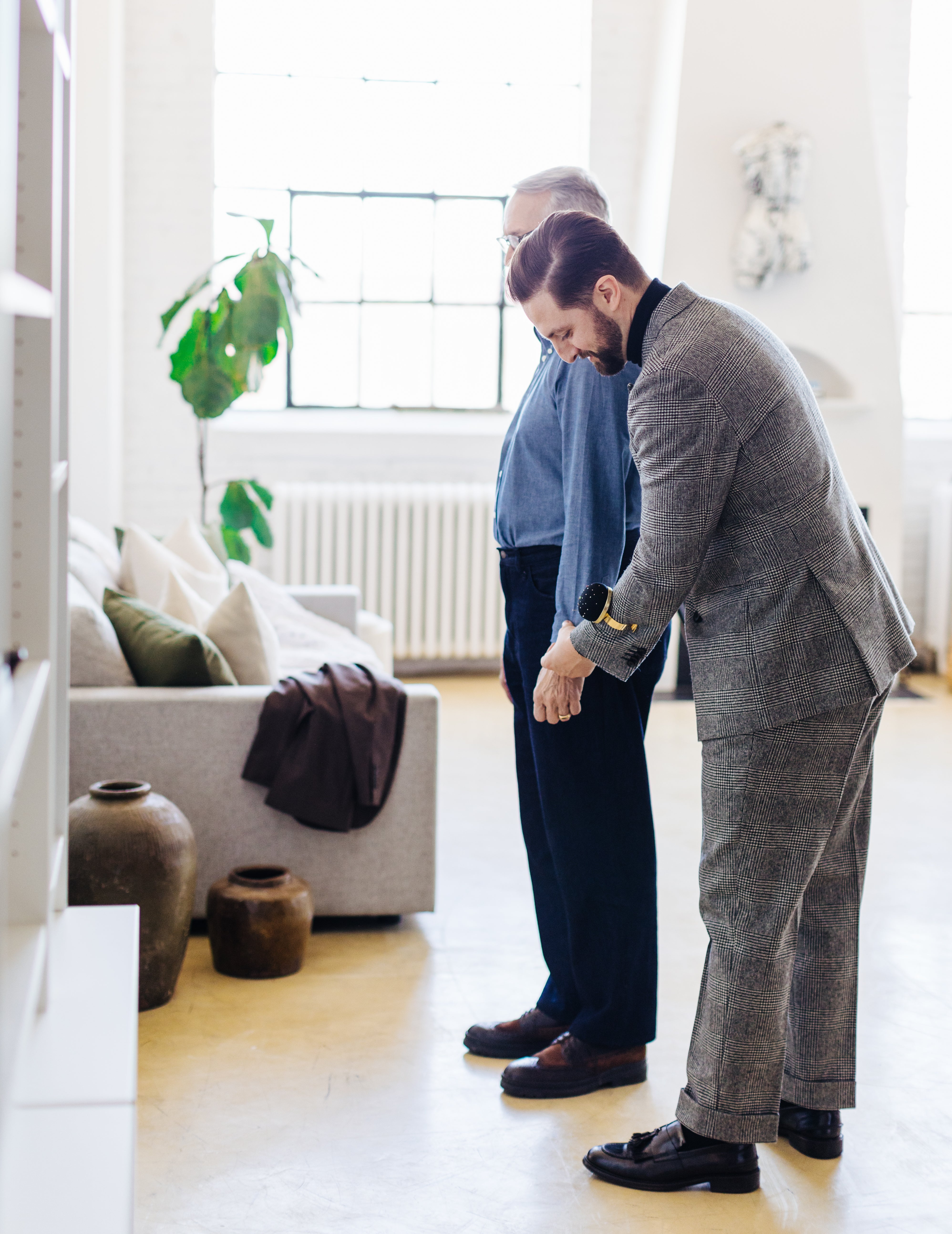 Is your closet full, but you can never find anything to wear? Our wardrobe edit service is an opportunity to get your closet to a place where getting dressed is a breeze. Once we get to know you and your taste, we will divide your clothing into three categories: Keep, Adjust, and Donate. We will take any alterations to our team of bespoke tailors and finish by making suggestions on clothing items that you may want to consider adding to round out your wardrobe.